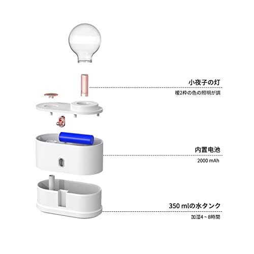 | 商品名 | ミニ 小型加湿器 卓上 コードレス 電池式 クール ミスト携帯 2000mah USB 充電式 28db 静音 ナイトライト付き ベッ |