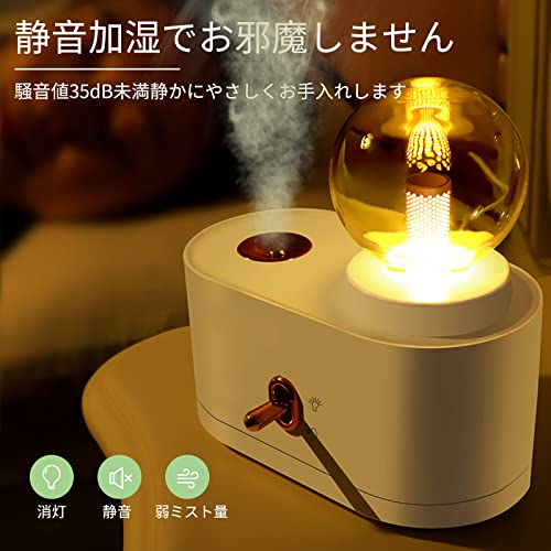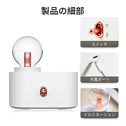 ミニ 小型加湿器 卓上 コードレス 電池式 クール ミスト携帯 2000mah USB 充電式 28db 静音 ナイトライト付き ベッ