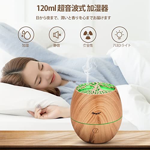 CkeyiN アロマディフューザー 超音波式 加湿器 卓上 小型 120ML USB式 静音 アロマ加湿器 寝室 子供部屋 オフィス