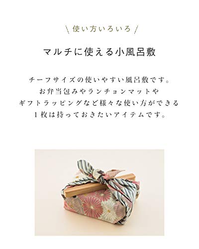 50cm角の小風呂敷です。落ち着いた色合いで、かつお縞に牡丹と菊が描かれたデザインは、華やかさと上品さを兼ね揃えております。旅行時荷物を分ける際に使うのはもちろん、ハンカチとしてお使いいただいたり。お弁当包みに使ったり。棚やテーブルの敷物にしたり、額に入れてお部屋のインテリアに使ったり。風呂敷として、小さいものを包むラッピングアイテムとしてもお使いいただけます。