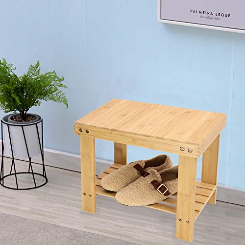 KKTONER 竹製踏み台 物置棚 収納スツール 靴収納 玄関小物 浴室バースルームフットスツール 玄関ベンチ シュー