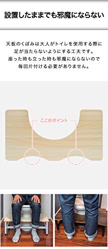 ?【設置したままでも邪魔にならない】 天板のくぼみは大人がトイレを使用する際に 足が当たらないようにする工夫です。 座った時も立った時も邪魔にならないので 毎回片付ける必要がありません。