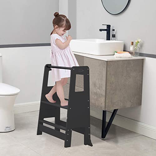 QINNKJIA 踏み台 子供用 木製 ステップ台 2段 脚立 階段調整可能 子ども 幼児 キッズステップ