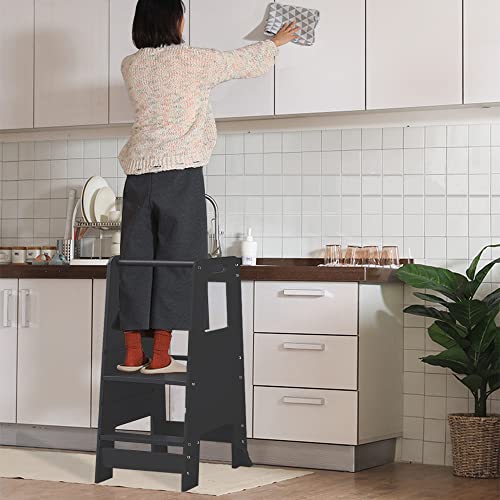 【一体式・階段調整可能】一体式幼児用補助ステップ台です。階段の二階の板は3つの高さに調整可能になるデザインで、お子様の身長に合わせて調整できます。