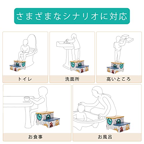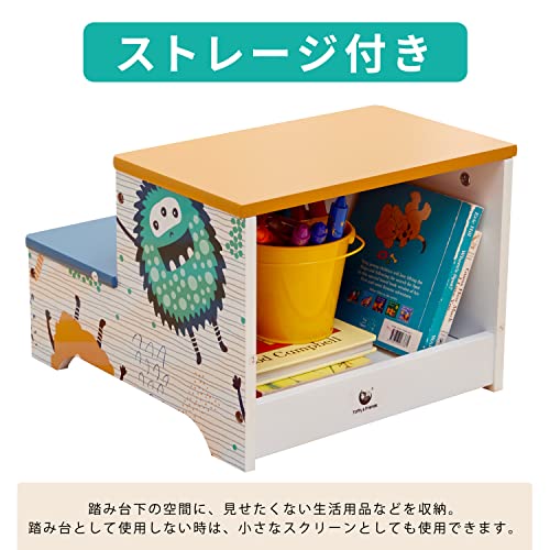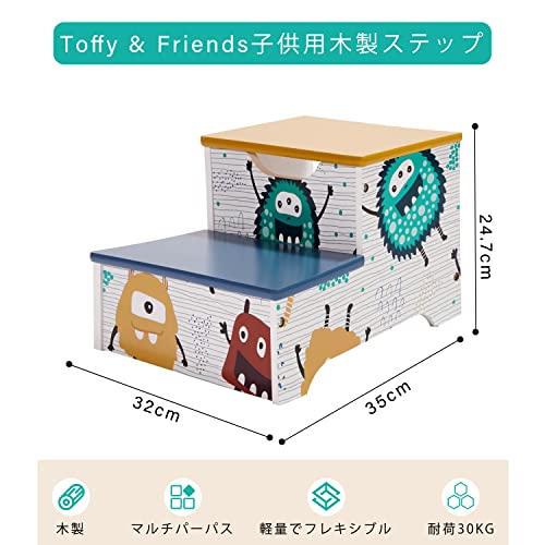 Toffy & Friends 踏み台 木製 2段 子供用 ステップ スツール 子ども ステップ台 こども ストレージ付き 耐荷重30kg