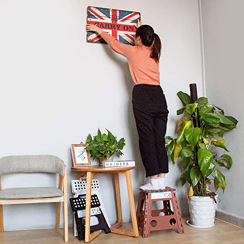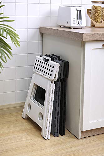 狭い場所に置ける --- 折りたたんだときの幅はわずか4.5cm!使わないときは簡単にしまっておけます。必要な時、踏み台を縦に立て、持ち手を下に押して展開。使わない時、直ちに把手を引っ張って収納。持ち運びするときも軽いので片手で運べます。シンプルな構造で折りたたみした状態で壁に立て掛けたり、空いたスペースへ収納できたりするので場所を取りません。