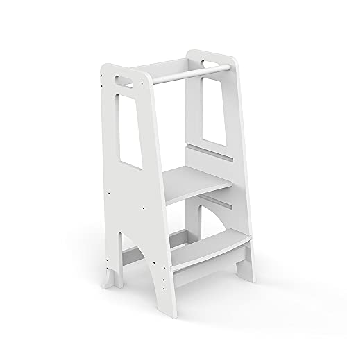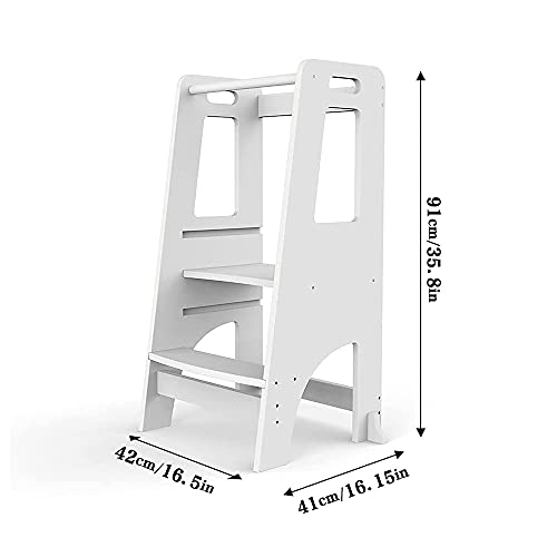 ?3レベルの高さ調節可能-子供用ステップには、高さ調節用の3つのステップ(30cm-40cm-50cm)があって、お好みに応じて調節できます。直立したタワーにより、すべての子供がキッチンで役立つ適切な高さを見つけることができます。高い場所でも幼児用スツールは幼児にやさしいです。
