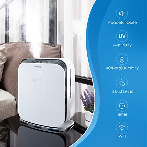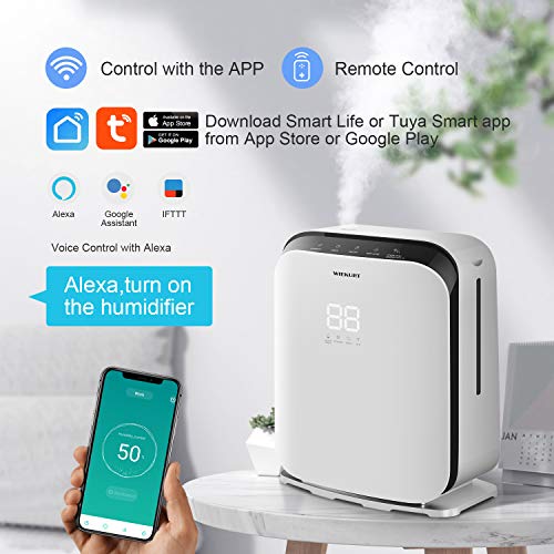 WIEKURT 加湿器 超音波式 次亜塩素酸水/アロマ対応 卓上 上から給水 5L大容量 36時間連続加湿 スマートおやすみ