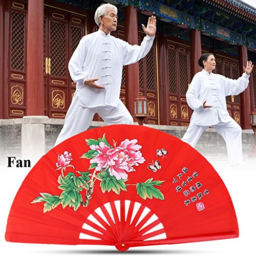 太極扇 中華風 ファン 折り畳み扇子 カンフー扇 牡丹扇 武術 踊り用 太極 練習用 舞台 表演用 軽量 道具 竹製