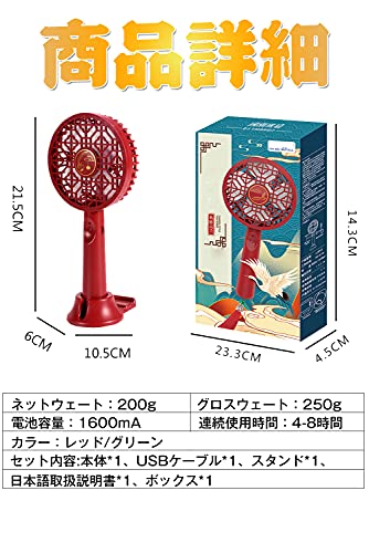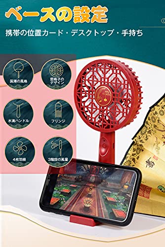 MACOLAUDER 団扇 中国風 せんす うちわ 扇子 ファン 電子 ハンドヘルド・卓上・携帯スタンド 風量3段階 羽根*4 薄