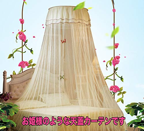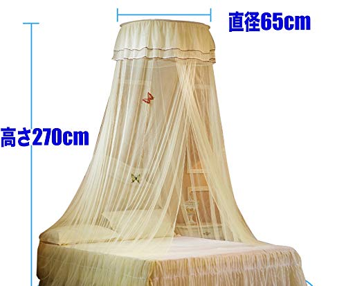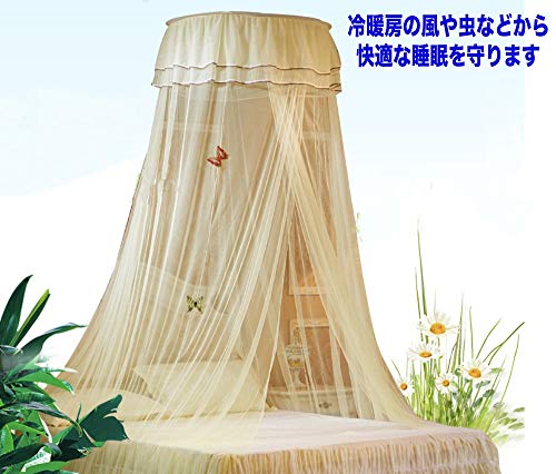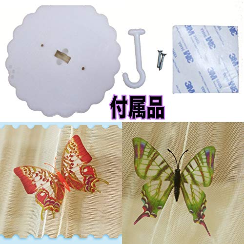 (lunar.maria) 白 蚊帳 モスキートネット 吊り下げ 天蓋 ベッド カーテン 蝶装飾付き 虫除け プリンセス お姫様 ロ