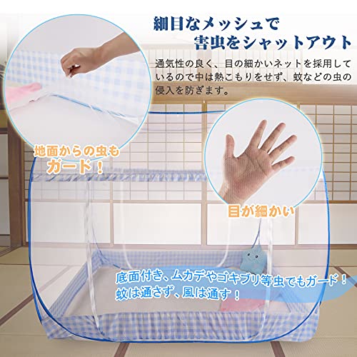 【細目なメッシュ&底面付き】?目の細かいネットを採用、小さな蚊でも通しません、嫌な蚊、虫をきっちんとガードします。?底面付きタイプで、蚊だけではなく、ムカデやゴキブリ等虫をガードできて、しっかり害虫の侵入を防ぎます。