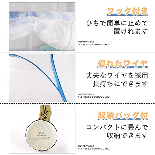 蚊帳 DEWEL ワンタッチ モスキートネット 2ドア設計 テント式 自立式 蚊/虫除け ムカデ対策 高さ160cm 底面付き