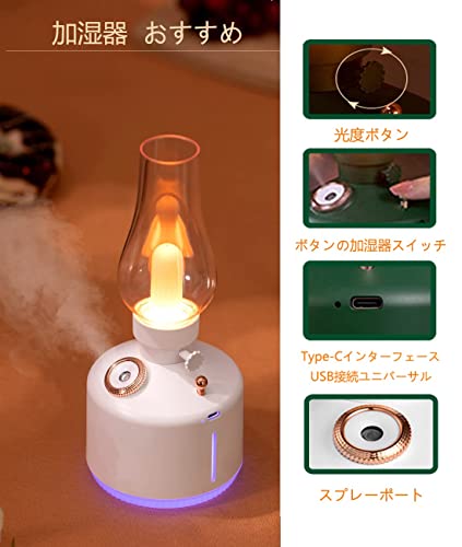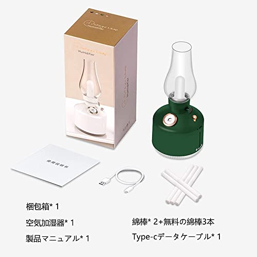 小型 加湿器 サイズ:9.5 9.5 22.5cm、重量:0.2kg、水タンク容量:280ml、ご家庭とオフィスに最適!付属品:ギフト用の箱1、空気加湿器1、Type-cデータケーブル1、綿棒2、説明書1(さらに3本の綿棒を無料で)
