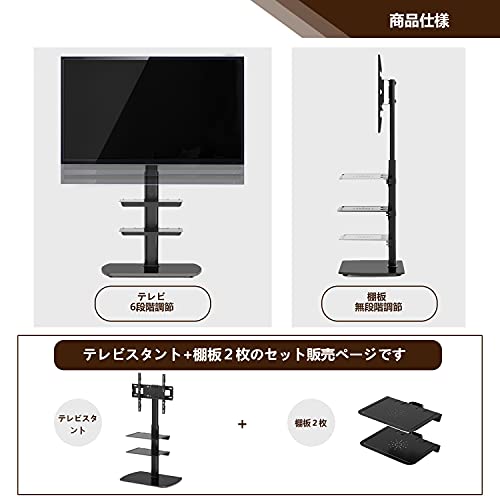 | 商品名 | TVON テレビスタンド壁寄せ テレビスタンド 32~65 インチ対応 tvスタンド 高さ調整可能 ラック左右30°回転 3段棚 |