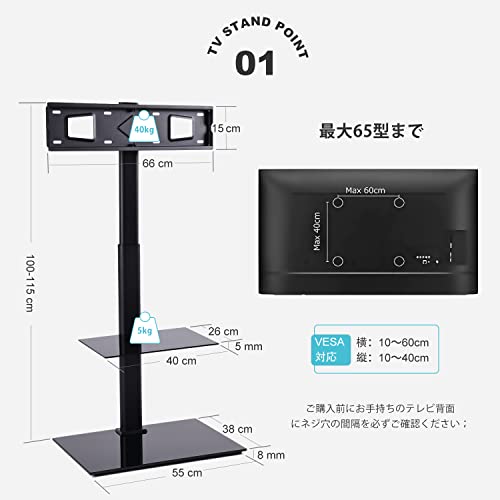 | 商品名 | JKR テレビスタンド 壁寄せ 23~65インチ対応 自立型 TVスタンド テレビ台 高さ4段階調整可能 ラック回転可能 日 |