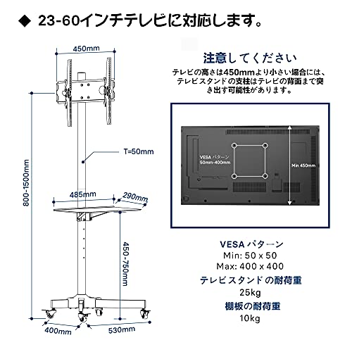 | サイズ | 23-60型テレビ対応/キャスター付き |