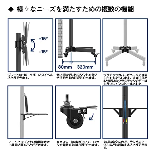 1homefurnit テレビスタンド 移動式 テレビ台 TV スタンド 23-60インチテレビ(LCD/LED/PLASMA/OLED)対応 キャスター付き