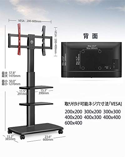| 商品名 | FITUEYES テレビスタンド 32~65型対応 キャスター付き 高さ角度調節可能 移動式 木目調 ブラック 耐震 中棚無階 |