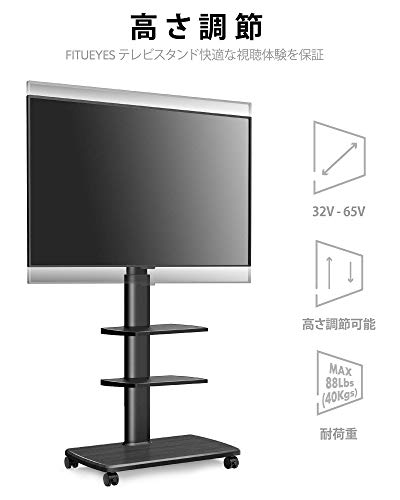 FITUEYES テレビスタンド 32~65型対応 キャスター付き 高さ角度調節可能 移動式 木目調 ブラック 耐震 中棚無階