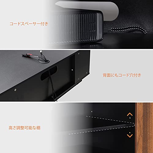 【多様の収納空間】両サイド隠す収納スペースと開放式AVデッキスペースがあります。側面の収納空間サイズが幅22×奥行33.6×高さ24.6cmとたっぷり収納することができて、DVDやリモコンやゲーム機など、テレビ周辺に置いておくと便利です。AV機器収納スペースは高さ調整可能で、収納物の高さを合わせて調整できます。AV機器が発する熱を逃しやすいオープン式で仕上げています。