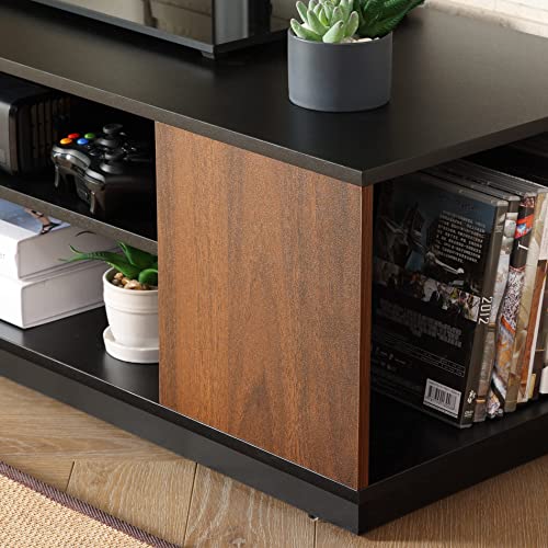 【お洒落なTVボード】木目のあるウォルナットとヴィンテージ加工のブラック二種類カラーを組み合わせるローボードです。高さは33.5cmのロータイプスタイルで見やすく快適で、ソファ、座椅子、床に座っでも最適の高さです。