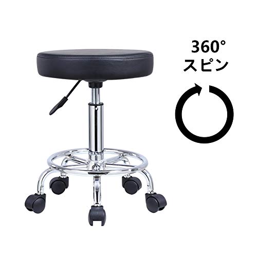 KKTONER 全5色 丸スツール キャスター付き 昇降スツール PUレザー 回転椅子 バーカウンターキッチンチェア製図