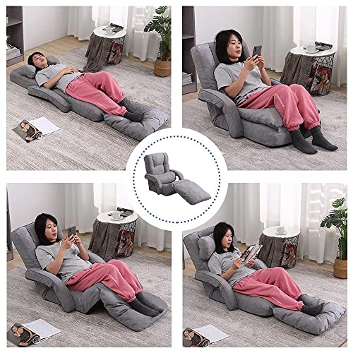 座椅子 ソファー ひじ掛け付き クッション付き 折り畳み リクライニング ハイバック 14段階調節 ふあふあ 脚