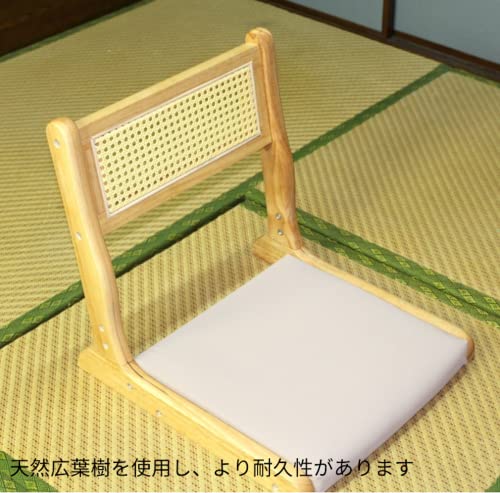 SHINWORKS 折り畳み椅子 瞑想式床椅子 おしゃれ 木製 室内 榻榻米シート (籐編みの背もたれ)