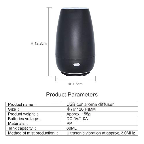 【アロマディフューザー】ミスト量:12~16ML / H。水タンク:60ml。製品重量は約155g。ユニークなスーパーサイレンス機能。ア