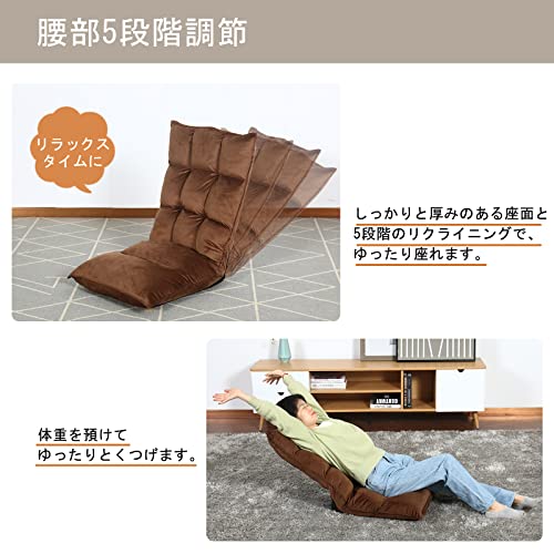 【頭部、腰部5段階ギア】リビングテープルやコタツ、テレビ台などとの相性抜群。頭部5段階、腰部5段階リクライニングでき、お好みの姿勢を見つけやすい。背中全体から首までしっかり支えて、長時間でも腰や首が疲れにくいです。