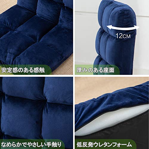 【幅広い座面&ハイバック】ハイバック仕様なので頭までゆったり預けることができます。読書やテレビの視聴、横になっての昼寝等、くつろぎ方は自由自在。幅49cm、長さ最大110cmのコンパクトなサイズで、座椅子又はフロアソファーとして使用してもモコモコで座り心地良いです。書き物や食事をする時はもちろん、TVを見る時でも欲しい角度が見つけやすいです。また、柔らかな色合いが落ち着いた雰囲気を、インテリアとして