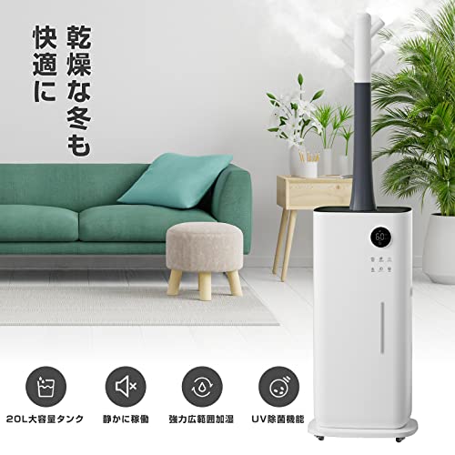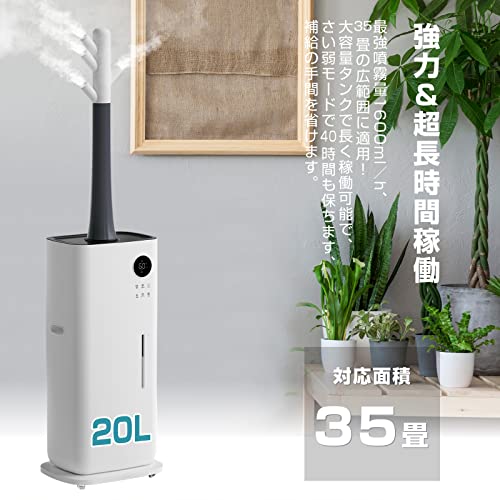 加湿器 大容量 業務用 20L 上部給水 水循環 4つ超音波振動子 大霧量 3段階調節 12Hタイマー付き リモコン付き