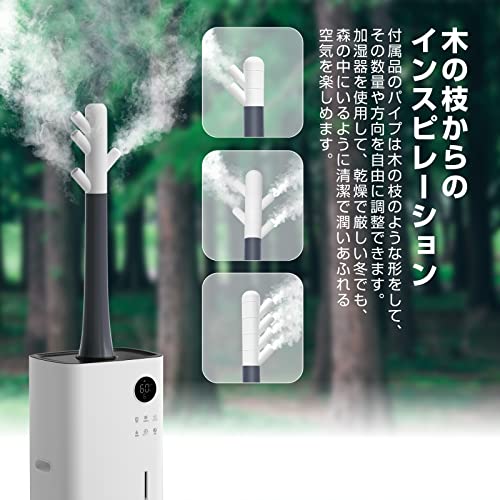 【超強力加湿パワー&3段階霧量調節】四個の噴霧器をつけていて、三段階噴霧量調整できて、噴霧量強モードでは1600ml/hになります、弱モードでも約440ml/hの噴霧量があり、普通の超音波加湿器と比べてかなり上回ります、広いスペースでも一機で大丈夫!36畳までしっかり加湿作業をします!