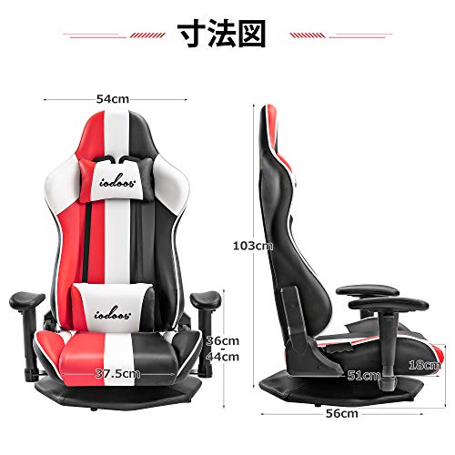 iodoos ゲーミングチェア 座椅子 ゲーミング座椅子 回転 170度リクライニング ひじ掛け付き 無償部品交換保証165