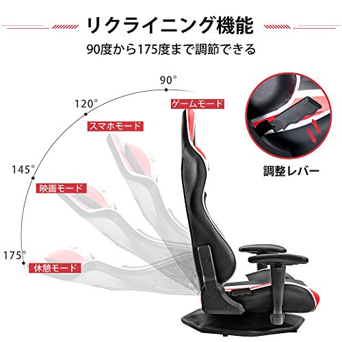 ?【特別設計】:三色デザインで生活の様々なシーンに合わせて、ゲームや仕事に楽しめます。台座:新型デザイン八角台座 安定性抜群 175度まで無段階背もたれ調節可能で、リラックスすることが簡単にできます。片手で右側の操作レバーを 引き上げると調節できて、ゲームや仕事の間に休憩や転寝にも最適です。