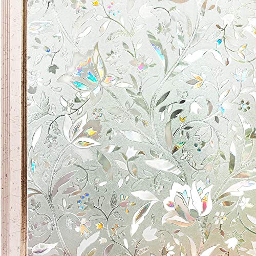 窓ガラス 目隠しシート 45CM×2M(チューリップの花柄)窓用フィルム 断熱 遮熱 UVカット 水だけで貼るタイプ 3D