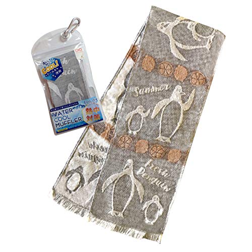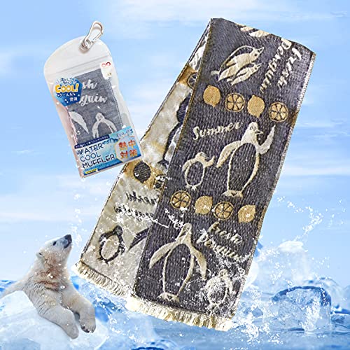 子供用 クールタオル 冷却タオル 接触冷感 クールマフラー ガーゼタオル 携帯ケース 付き ペンギン グレー 16c