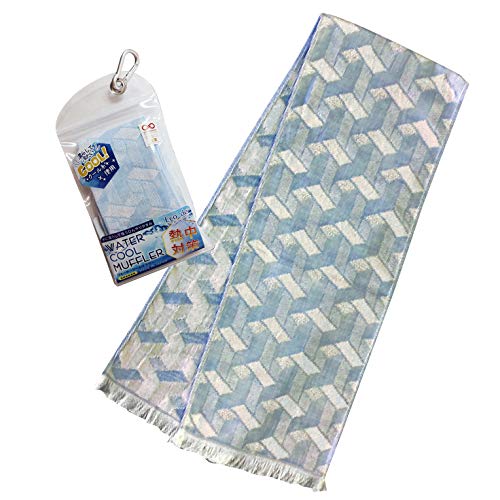 子供用 クールタオル 冷却タオル 接触冷感 クールマフラー ガーゼタオル 携帯ケース 付き 幾何学模様 ブルー