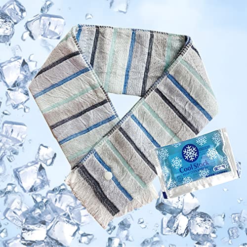 クールタオル 冷却タオル 接触冷感 冷たいタオル クールマフラー 保冷剤 付き ボタン 付き ボーダー ブルー 8c