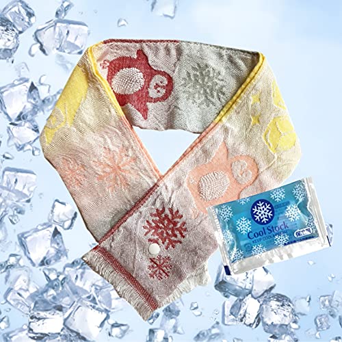 クールタオル 冷却タオル 接触冷感 冷たいタオル クールマフラー 保冷剤 付き ボタン 付き ペンギン レッド 8c