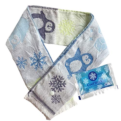 クールタオル 冷却タオル 接触冷感 冷たいタオル クールマフラー 保冷剤 付き ボタン 付き ペンギン ブルー 8c