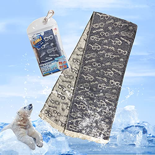 子供用 クールタオル 冷却タオル 接触冷感 クールマフラー ガーゼタオル 携帯ケース 付き メガネ グレー 16cm×