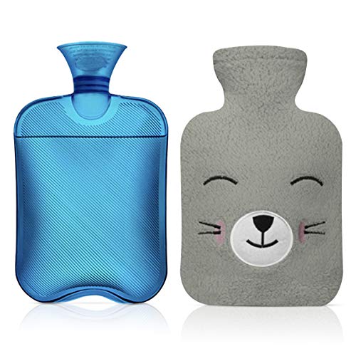 LATTCURE 湯たんぽ お湯入れ式 1000ML 水漏れ防止 PVC ふわふわのカバー 冬 就寝 デスクまわり 冷え対策 電気不要