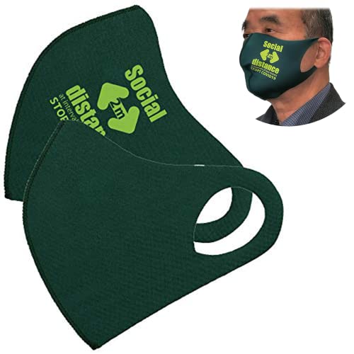 クロッツ XLサイズマスク 2枚入り 洗える 水着素材 伸縮 (グリーン+ソーシャルディスタンスロゴ, XL)