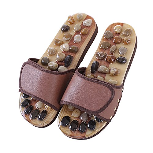 足つぼ マッサージ スリッパ 健康 サンダル レザー天然石 (S 24.5~25.5, ブラウン)