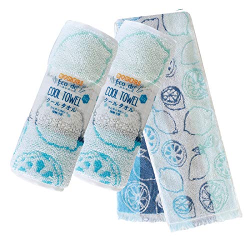クールタオル 冷却タオル Eco de クール 濡らさなくても冷たい 約16cm×90cm 2枚組 セット レモン ブルー (冷感 冷