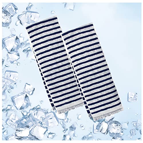 クールタオル 冷却タオル 接触冷感 クールマフラー 冷たいタオル 濡らさなくても冷たい ボーダー ネイビー 16
