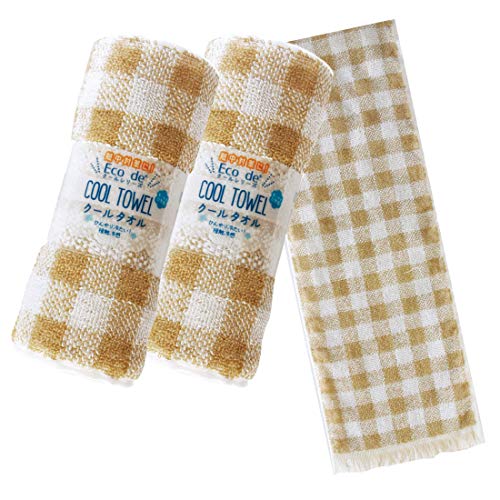 クールタオル 冷却タオル Eco de クール 濡らさなくても冷たい 約16cm×90cm 2枚組 セット ギンガムチェック ベー