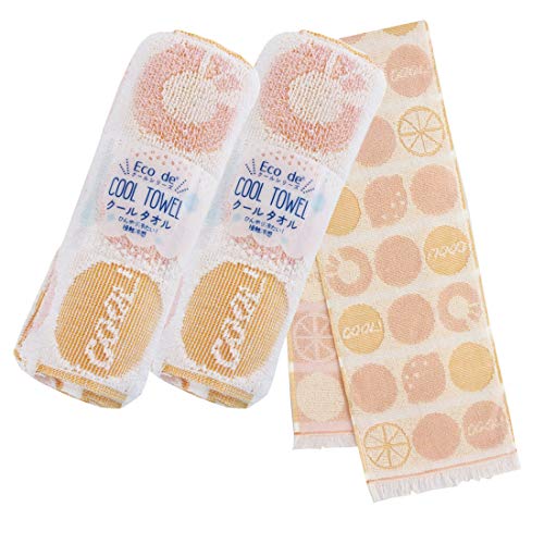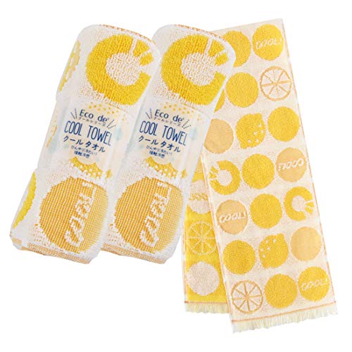 クールタオル 冷却タオル Eco de クール 濡らさなくても冷たい 約16cm×90cm 2枚組 セット クールフルーツ イエロ
